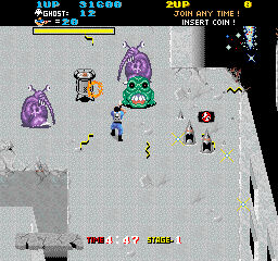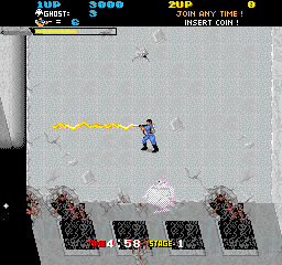 It reminds me a lot of the Indianan Jones games from the same era – numerous different-ish levels that will keep you entertained until you realise that there’s no real point to the game and give up. A good arcade game is like a whore – 20 minutes of quickly-dimininshing bashing until you’ve spunked your money away. Skill is irrelevant; money is the only thing that’ll keep you on, and you pay for as long as you want to play. The Real Ghostbusters is perfect in this respect.